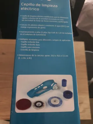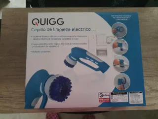 Cepillo de limpieza eléctrico multifunción de la marca QUIGG. Ideal para una limpieza rápida y efectiva en casa. - Incluye múltiples accesorios. - Funciona con 4 pilas AA (incluidas). - Sin necesidad de frotar de forma insistente y prolongada.