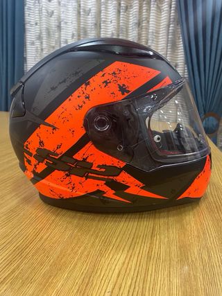 Casco de moto negro con visera transparente de la marca LS2. - Diseño moderno y seguro. - Visera amplia para mayor protección.