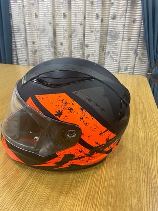 Casco de moto integral Suomy, en buen estado. - Diseño llamativo con estrellas y llamas. - Visera transparente con algunos arañazos. - Talla M