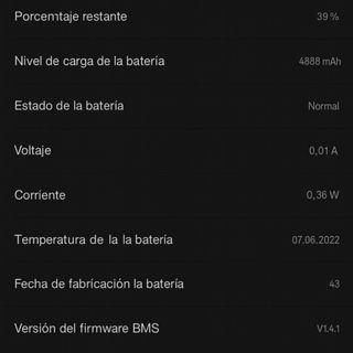 Patinete eléctrico Xiaomi Pro 2 en buen estado. Ideal para desplazamientos urbanos. - Capacidad de batería: 4888 mAh. - Voltaje: 35,52 V. - Temperatura de la batería: 24,0°C. - Fecha de fabricación: 07.06.2022. - Número de serie: 4XFGJ22F7B4457. - Ciclos de carga: 43. - Versión firmware BMS: V1.4.1.