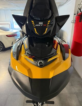55h Moto acuática Seadoo RXT 300 RS de color amarillo y negro. - Diseño deportivo. - Asientos cómodos para varios pasajeros. - Extras: altavoces, funda, escalera de baño, defensas laterales, ergolock, remolque - Año 2022 revisión en pacutos al día de todo - Se puede ver su estado gti, Wake pro, Gtx Limited, Yamaha vx sho, Rxp