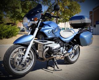 BMW R 1150 R en color azul metalizado. - en perfecto estado, a toda prueba. - Incluye maletas laterales originales y baúl trasero de gran capacidad. - Asiento tapizado. - Cúpula deflectora ahumada. - Puños calefactados, conector USB, batería exide con conector rápido para cargador-mantenedor instalados e incluidos y ruedas Michelin road 5 todo nuevo y recién instalado. - Mantenimiento general con factura de hace unos mil kms que incluye sustitución de todos los líquidos y filtros, bujías, etc... Demostrable con factura. Abstenerse ofertas estupidas, no urge. Cambiaría por vfr800 o similar.