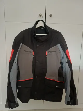 Chaqueta de motorista Dainese con forro interior. Solo se ha utilizado 2 veces. - Talla XXL - Chaqueta negra, gris y roja. - Cierre frontal con cremallera y botones. - Bolsillos frontales con solapa. - Cuello alto.