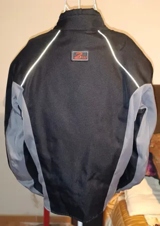 Cazadora de motorista de la marca 2WHeels. - Diseño en color negro y gris. Tejido impermeable. - Cremalleras frontales y en las mangas. - Bolsillo interior con cremallera. - Forro acolchado. - Detalles reflectantes en la parte superior. - Protectores en hombros, codos y espalda. - Talla M