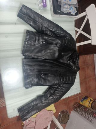 Chaqueta de motorista BKS en color negro. Diseñada para hombre. Talla XL - Cierre frontal con cremallera y botones. - Bolsillos frontales con solapa y botón. - Cinturón ajustable en la cintura. - Puños ajustables con botón. Regalo chaqueta de agua de la misa marca . Talla XL