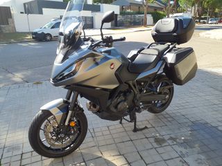 Voge DS900X Azul y Gris. La moto está bastante nueva, es de mi padre que se la compró por un capricho y ya no la va a utilizar. -15.500 km. -Todas revisiones en Voge. - Color plateado con detalles en azul. - Incluye maleta trasera. - Ruedas originales. -Asientos y puños calefactables. -Cambio shifting. -Protecciones laterales. -Protecion de pantalla, con carátula para el sol. -Llaves manos libres. -Amortiguador de dirección. -Suspensión delantera y trasera regulable. -Luces antiniebla. Para más fotos o vídeos contactar..