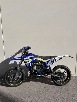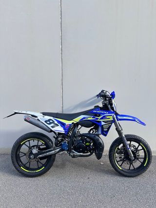 Sherco SM-R 50 del 2020 en perfecto estado, lista para rodar. La compre nueva único propietario. ITV hasta Agosto 2027 La moto lleva: - Cilindro Italkit 74cc - Carburador Polini 24 - Filtro de aire de potencia - Embragues MVT reforzados - Caja de laminas malossi de fibra de carbono - Marcador de temperatura Voca - Pulmón Polini - Manillar Voca 28mm - Espuma protectora Renthal - Espejo antimultas - Limitador de rpm para ITV - Puños domino - Protector piñón y bomba de freno trasero en azul Doppler - Piñón 11 dientes - Corona 48 dientes - 16284 Km - TODAS LAS PIEZAS DE SERIE Opcional: - Escape de competición MJC 70/80 (ultimas fotos)