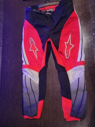 Camiseta y Pantalones de moto para niñ@ Alpinestars en color rojo y negro. Tiene cosidos en los laterales elástico para un mejor ajuste. De 7 a 10 años - Diseño con detalles en gris y blanco. - Logo de Alpinestars en las perneras. - Cierre frontal con hebilla. - Tejido técnico.