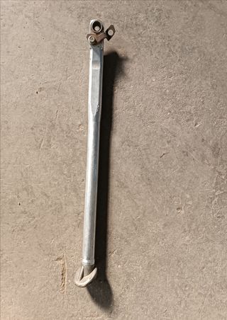Caballete para moto KTM EXC. Fabricado en metal plateado. -Longitud: 39cm - Soporte para moto. - Pie de apoyo con forma curva.