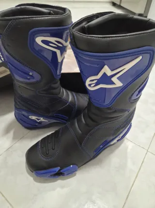 Botas de moto Alpinestars SMX-4 en color azul. - Diseño deportivo para carretera. - Materiales resistentes y duraderos. - Cierre seguro para protección. - Detalle de logo Alpinestars. De regalo guantes usados a juego
