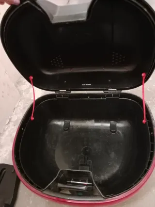 Cajón de almacenamiento para moto tipo scooter. Es de color negro con detalles en rojo. - Fabricado en plástico resistente. - Incluye sistema de cierre. - Diseño amplio para guardar objetos.