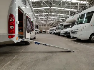 Rampa de aluminio para carga de motos o equipamiento. -Yo la he utilizado para subir la moto a la autocaravana pero puede valer para remolque salvar escaleras o lo que te haga falta. - Mide 2m desplegada y 1,16 recogida. - Aguanta 150Kg - Fabricada en Suecia. No es un producto chino barato. - Diseño telescopico para fácil transporte y almacenamiento.