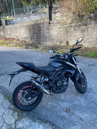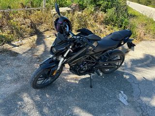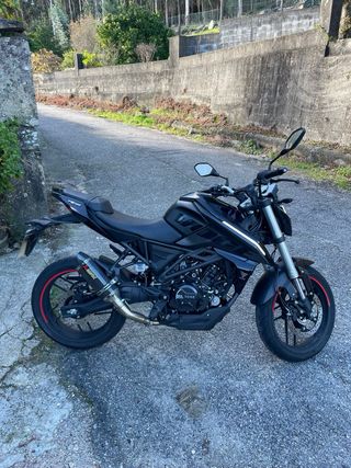 Moto Voge 125R en color negro. Diseño deportivo y ágil. - Escape Akrapovič. - Llantas con detalles rojos. Con dos caidas pero todo reparado en casa oficial, se puede mostrar facturas. En el cuadro marca 1408 kilometros pero se le tuvo que cambiar cuando marcaba 4285 kilometros. En total la moto tiene 5693 kilometros. Tambien se puede mostrar papel que lo justifica. Escape y linea entera de aliexpres, se entrega tambien el original. Todo al dia, menos seguro que se le acabo en noviembre y no se le renovo porqur no se usa, funciona perfectamente, se vende por cambio de moto a una mas grande.