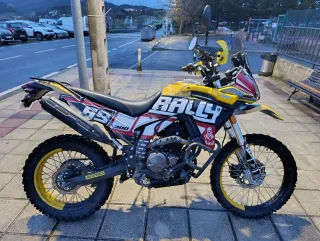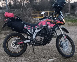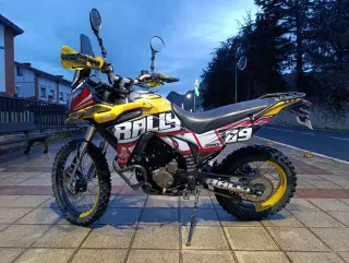 Moto de diseño deportivo y aventurero. Ideal para rutas off-road y asfalto. Este modelo viene con reloj y marcador de gasolina, apenas 4000km y 4 años y medio mas de garantía en la casa oficial. Cargada de extras como: -Cubrecarter metalico -Neumaticos de tacos ( se entregan los originales tambien ) -Barra de accesorios -Adhesivos protectores y para facilitar el agarre con las piernas -Alzas de manillar -Puño rapido -Protector de faro -Filtro de aire de alto flujo de espuma lavable -Funda de asiento protectora -Rack portamaletas Y entrego Power flow La moto esta en perfecto estado, se vende por necesidad economica.