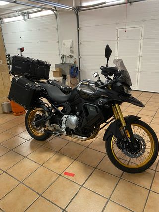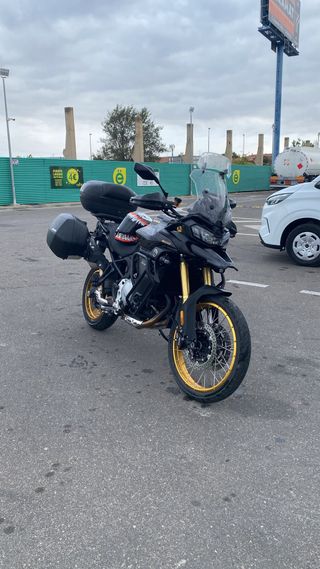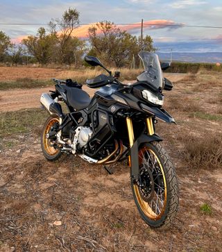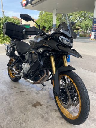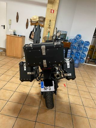 Moto trail en color negro con solo 5000 kilómetros. - Diseño robusto y aventurero. - Ruedas con llantas doradas. - Maleta trasera incluida. Maleta trasera 65l. Perfecto estado Garantia de 4,5 años en servicio oficial.