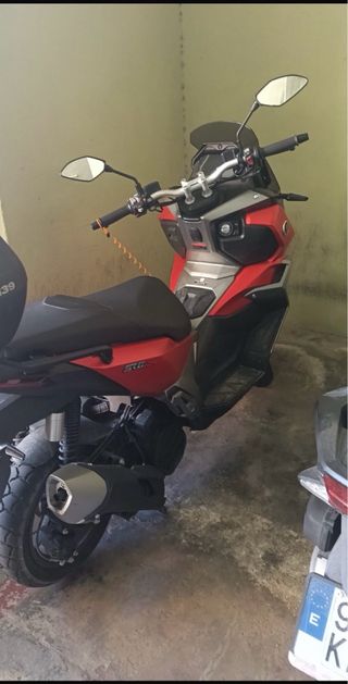 Maxiscooter de color rojo y gris con transmisión automática. - Diseño deportivo. - Asiento cómodo. - Maletero SH39. - 1900 km - un solo dueño - muy cuidada - primera revision hecha