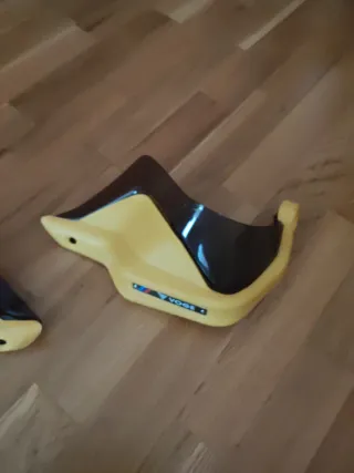 Guardamanos de la marca Voge en color amarillo. Voge sr4 2022 a 2023 - Diseño aerodinámico. - Logotipo de Voge visible.