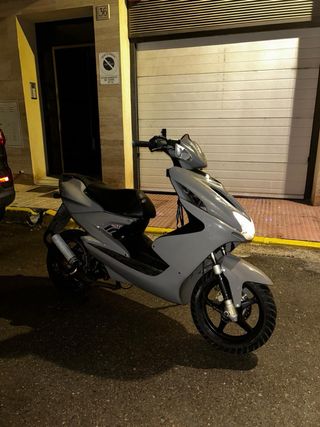 Se vende scooter Yamaha Aerox de 49cc. La moto esta de serie pistón recién echo con factura demostrable, se da con el plástico de abajo, la moto esta muy bien se le han puesto varias piezas nuevas, hay que darle una vuelta ya que la moto llevaba tiempo sin usarse, tiene todos los papeles al día, sin itv ya que no tengo tiempo. Mas info escribirme.