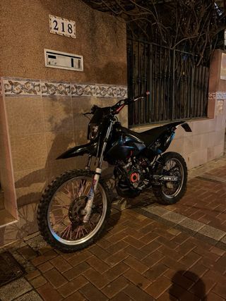 Moto matriculada en el 2008, con 1000 km hechos tras hacer el motor entero (marca 50000), monta un cilindro de 70 de la marca stage 6, kit de transilion cambiada a una de competicion, tubo de escape arrow, freno delantero sobredimensionado, con motor de arranque y con todos los mantenimientos al dia! La moto tiene bastante desperfectos en los plasticos y pintura pero por lo demas la moto esta de motor perfecta a falta de una puesta a punto de carburacion ya que lleva un tiempo parada. (se dan piezas y recambios extra junto con su kit de itv) Se acepta cambio por moto de cross. Se cambia por simulador de carreras.