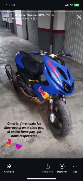 Se vende Yamaha Aerox preparada para competición. Está en muy buen estado. - Incluye cubierta TNT refrigerada. - Amortiguador trasero Bitubo. - Decoración MetraKit ProRace. - Preparación completa Metrakit. 85cc. - Frenos de disco delantero competición.