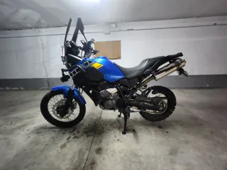 Yamaha Ténéré XTZ660 en color azul. - Diseño robusto para todo tipo de terrenos. - Parabrisas alto para mayor protección. Cubre carter , protecciones laterales GIVI ,protector de faro touratech , focos auxiliares , estriberas más anchas marca PUIG - Neumáticos para off road mitas dakar plus trasera i delantera tkc80 , también tengo los neumáticos para carretera -Discos floreados resient puestos mejor que los de serie - Muy bien cuidada, duerme en garaje privado y mantenimientos al día I con opción de vender con maletas de yamaha , esto es aparte. APTA PARA EL A2 NO ACEPTO CAMBIOS