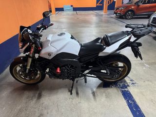 Moto Yamaha FZ8 en estupendo estado. - Color blanco con detalles rojos. - Incluye portaequipajes trasero. - ITV hasta septiembre del 2027. - Revisiones y cambios de líquidos hace menos de 200km. - Ruedas al 60% - Escape GPR cerámico homologado. - 52000 km. - 3 llaves originales. - Se acepta cualquier tipo de prueba.