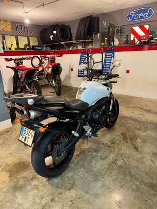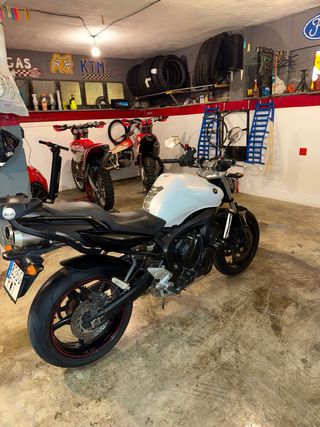 Yamaha Fz6 N 2006 impecable muy bien cuidada. La tengo desde los 13.000km. Ultimo mantenimiento hace 1500km con facturas demostrables incluye: Liquido de frenos, pastillas de frenos, aceite y filtro, liquido refrigerante y bomba de agua, filtro de aire. x2 propietarios x2 llaves negras y x1 roja 33.000km Kit de arrastre reforzado D.I.D. 70% Bridgestone S22 al 80% ITV hasta Nov 2026 Escape GPR ghost. Siempre ha dormido en garaje, todo original y sin caídas. Entrego todo lo de serie. Espejos, portamatriculas, manetas, intermitentes y escape. Si vienes a verla te la quedas! ABSTENERSE OFERTAS ABSURDAS.
