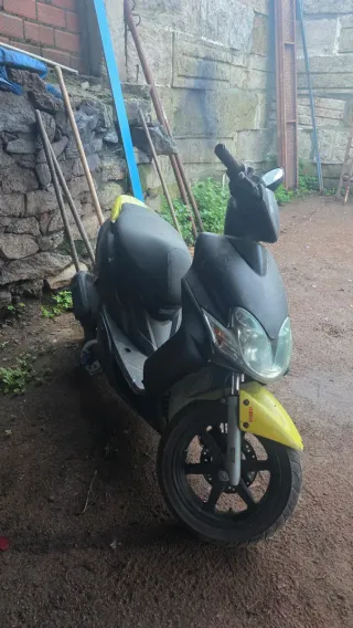Scooter Yamaha Jog RR en color negro y amarillo. La moto esta completa de serie con las piezas originales anda perfectamente solo le falta plato magnetico del de 12 bobinas (valen 30 euros) y hai que pasarle itv si traes el plato se monta y pruebas sin problema, ai algo de trabajo era un prollecto para arreglar entera pero lleva un tiempo parado Carburador 12,5 50cc, escape de serie, completa de serie. Esta sucia de estar parada pero en buen estado general O CAMBIO POR COCHE DE MI INTERES, PREGUNTAD <<<<<<<<<<<NEGOCIABLE>>>>>>>>>>>