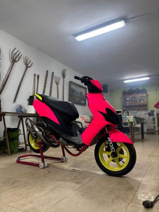 Vendo yamaha jog rr totalmente de serie, esta tal cual salio de fabrica exceptuando las ruedas, funciona todo a la perfeccion con itv al dia