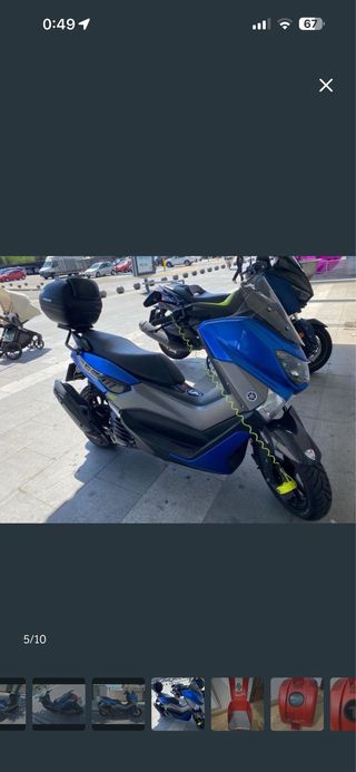 Yamaha NMAX 125 Connect en color azul. - Diseño moderno y deportivo. - Equipado con baúl trasero.( incluyo cúpula y parrilla trasera de serie ) - 29000 km y en uso diario - todas las revisiones en Yamaha oficial (facturas comprobables) - llave roja de seguridad - correa, filtros , aceite, pastillas de freno cambiadas hace 1000 km - llanta trasera nueva - llanta delantera 85% - siempre en parking -🚨 desperfectos -Tiene un arañazo en el siento (por lo que tiene un cobertor de su medida ) - tiene una pequeña rascada en el lado izquierdo y maneta de freno un poco doblada ( la compre con así) Se puede revisar donde quiera!