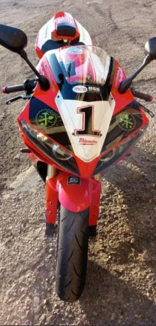 Motocicleta deportiva Yamaha R1 del año 2008. - Diseño deportivo. - Color blanco y rojo. -lleva la maza de embrague completa cambiada original me gasté 2.000€ -motor de arranque nuevo -batería recién cambiada nueva -ITV pasada recientemente -lleva los escapes gpr competí están homologados.la moto la doy con los escapes de casa y porta matrículas de casa también. todo lo que le he cambiado y puesto nuevo a la moto se puede demostrar -la moto está en perfecto estado lleva 46.000km kit de arrastre completo cambiado y aceite y filtro también.reglaje de válvulas recién echo. rueda delantera y rueda trasera recién puesta