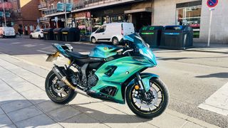 Preciosa Yamaha R7 azul, modelo 2025. Está en excelentes condiciones. 8800km. Recién hecha revisión de los 10000km por petición propia. Deslimitada. ITV recién pasada. Topes anticaida puestos en la casa yamaha. Y manetas r7 azules, también originales. Garantía de la casa de 3 años. Documentación y facturas de todo. - Modelo: Yamaha R7 - Año: 2025 - Color: Azul