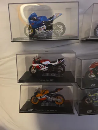 5 euros cada una Colección de maquetas de motos de competición. - Maqueta Suzuki GSV-R Kenny Roberts Jr. 2004. - Maqueta Yamaha R7. - Maqueta Honda RC211V Alex Barros 2004.