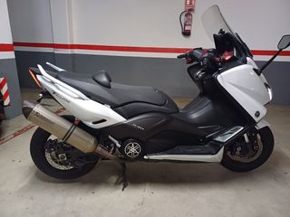 Maxi-scooter Yamaha TMAX 530 del año 2013. Yamaha TMAX 530 del 2013 tremendamente cuidada. Siempre ha dormido en parking privado. Ninguna caída. Todas las revisiones en taller oficial Yamaha. ITV en vigor hasta 2027. Color Nardo oro. 50.000km recién pasada revisión completa (correa, frenos, bujías, aceite y filtros). De las pocas Tmax así que quedan. Vendo por cambiar a eléctrica.