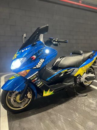 -NO SE HACEN CAMBIOS- Maxi scooter Yamaha Tmax 500 del año 2006. Presenta un diseño llamativo de Valentino Rossi con colores azul y amarillo. - Diseño personalizado con gráficos. - Pantalla chica deportiva. - Asiento tapizado con rombos. - Ruedas al 90% Diablo Rosso. - Tubo de escape Jcosta. - Embrague Malossi - Variador Jcosta. - Luces led. - Diapasón luminoso Yamaha con intermitente. 89.000km