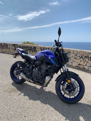 Moto Yamaha MT-07 del año 2023. - Limitada para el A2. - Todas las revisiones en casa oficial. - 7500km - Porta matrículas corto (incluido) - Tubo de escape línea completa (incluido) - Siempre en garaje - Se entregará con todas las piezas originales. Solo compradores directos, solo se valoran cambio por Yamaha Tenere 700.