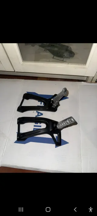 Conjunto de piezas para Yamaha Ténéré 700. - Maneta de embrague. - Cubre puño izquierdo. - Embellecedor de cubre puño izquierdo. - Reposapie izquierdo. Marcas de apoyar solo una vez en el suelo (no caida)