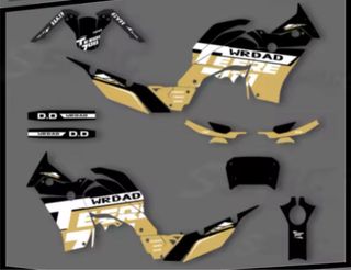 Kit de vinilos decorativos para Yamaha Tenere 700 en color beige y negro. - Diseño moderno y deportivo. - Incluye varias piezas para cubrir diferentes partes de la moto. - Acabado brillante.