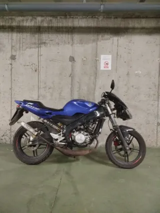 Moto Yamaha TZR 50 del año 2006 en color azul. Todo hecho hace menos de 1000 kilómetros: -top negro 74cc. -embrague reforzado malossi. -carburador 21mm. -Escape yasuni (homologado). -Mantenimiento de suspensiones delanteras. La moto lleva algunos meses parada, necesita una batería y una limpieza del carburador. Solo la preparación costó alrededor de 450 euros con mano de obra incluida, más 100 euros de las suspensiones. Neumáticos de 2024 con muy poco uso (ambos continental) Algo negociable, abstenerse a ofertas absurdas por favor. No estoy interesado en cambios. Gancho: 50cc 49cc Yamaha Rieju derbi mh Piaggio beta ciclomoto