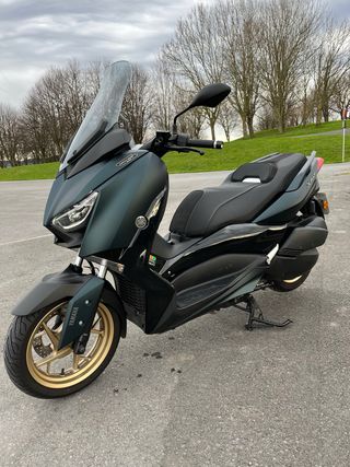 Scooter Yamaha XMAX TECH MAX en color DARK PETROL verde oscuro mate con detalles dorados. -Como Nueva -5.100 KM. -SEMPRE GARAJE. -Año 2022 -2 llaves KEY -Seguro hasta Marzo del 2026 - Diseño deportivo y elegante. - Asiento doble ergonómico. - Llantas doradas de aleación.
