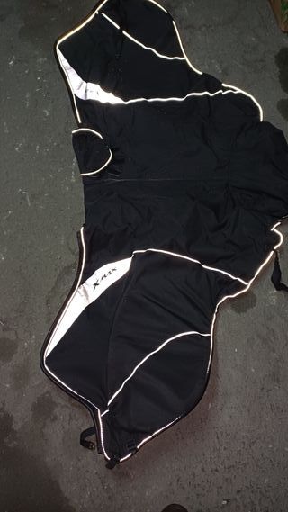 Manta térmica para moto, ideal para protegerte del frío y la lluvia en tus desplazamientos. - Diseño en color negro. - Detalles reflectantes para mayor visibilidad. - Logo XMAX visible en la parte frontal.