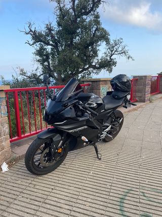 Se vende por aprobar el A2 Yamaha YZF R125 del año 2019, 36.035 kms, muy cuidada. Todas las revisiones en servicio oficial Yamaha, la última a los 35.600 kms. Demostrables con factura. Kit de arrastre recientemente cambiado (29.000 kms). Ruedas al 80% de vida y moto siempre guardada en garaje. ITV hasta mayo de 2026. Solo con los defectos estéticos de las últimas fotos que no afectan al rendimiento. Ideal para carnet A1 o B con antigüedad, perfecta tanto para ciudad como para escapadas. Se puede probar bajo ciertas condiciones. Cualquier duda o más info pueden contactar conmigo.