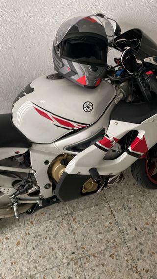 Se vende Yamaha YZF R6 del año 2000. Tengo escape de serie otro asiento trasero en blanco otra cupula en rojo kit de arrastre nuevo retenes de barras y liquido,aceite y filtro de acete y de aire recien cambiados tengo factura kilometros 56.000 mangitos calefactables se escuchan ofertas - Color blanco con detalles en rojo y negro. - Parabrisas oscuro. - Escape deportivo.