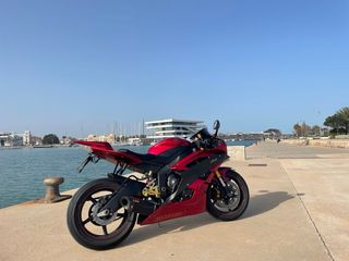 Se vende yamaha YZF R6R del 2007 con 40.000km al dia de mantenimientos y en buen estado general a falta retocar algunos detalles esteticos debidos a una caida, no mareantes si quieres una impoluta estan en 7000€ con estos km. - latiguillos metalicos - proteccion chasis, basculante y motor en fibra de carbono - escape termignoni homologado - ruedas pirelli - portamatriculas corto puig - intermitentes de led - colin monoplaza - 3 llaves - itv hasta 2027 NO CAMBIO POR NADA