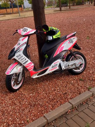 Preciosa moto Yamaha Jog RR de 49cc, con un diseño deportivo y llamativo. Está en buen estado. - Incluye pegatinas personalizadas. - Llantas de aleación ligera. -escape yasuni R homologado (tengo los papeles) -Neumático delantero 70% -Neumático trasero 85% -Sin ITV ahora mismo va preparada con un 70 italkit y un 19 dellorto (con la piezas de casa 1200€) -se vende o se cambia ⭕️ -el velocímetro no funciona(puede ser el sensor)pero marca la gasolina perfectamente.