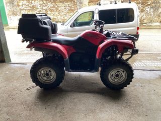 Quad Yamaha Grizzly 660 en color rojo. Un vehículo todoterreno robusto y versátil. El quad tiene 10 mil km. Revisión recién hecha. Neumáticos nuevos. Itv en vigor hasta 2028. - Tracción 4x4. - Diseño deportivo y funcional. - Ruedas todoterreno.