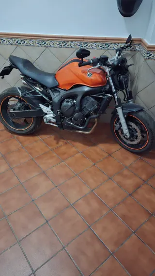 Moto Yamaha FZ6 de segunda mano 2006.esta modificada con subchasis cortado y foco delantero cambiado,y escape,no está homologada pero la puedo entregar con todo de serie montada o así como está .la moto tiene 64000 km.no hay que hacerle nada.Motor robusto y fiable ,no apta para a2.98cv. Cualquier duda hablarme .. - Color naranja y negro.. - Diseño deportivo.