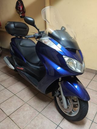 Se vende moto tipo scooter de la marca Yamaha, concretamente el modelo Majesty con 400cc. La moto actualmente se utiliza para ir del trabajo a casa y de casa al trabajo, esta tiene un funcionamiento y un consumo muy bueno para toda la potencia que desarrolla, sin embargo la tengo puesta en venta por cambio a una moto de mayor cilindrada. Siempre ha dormido en garaje, ha estado muy bien cuidada y mimada con mantenimientos al día y sin ningún problema mecánico hasta la fecha. Actualmente tiene 41.900 km, no urge su venta. Cualquier cuestión relevante a conocer preguntar sin compromiso, si realmente se está interesado.