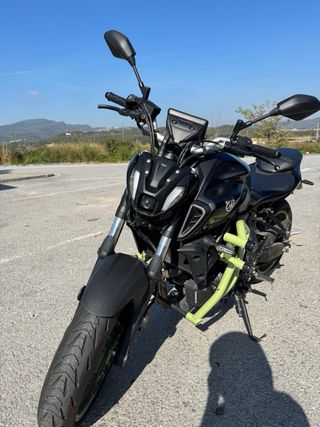 Moto Yamaha MT-07 en color negro. Un modelo naked con caja de cambios manual. Solo 4 mil kms!!! Algunos extras, siempre durmiendo en garage. Mantenimientos en Zona Zero Gavá, sitio oficial Yamaha. Se vende por no usarse por eso está como nueva. Abstenerse mareadores y ofertas absurdas!!! - Diseño deportivo y agresivo. - Manillar ancho para un mejor control. - Faro delantero LED distintivo.