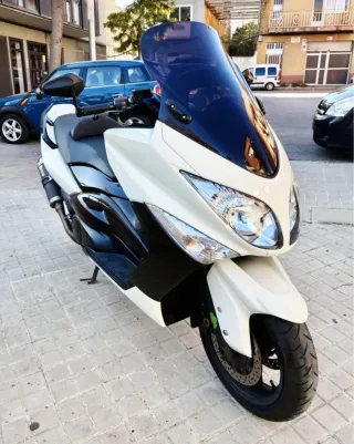 Maxi-scooter Yamaha Tmax 500 del año 2009 con itv hasta 12/2027. - Diseño deportivo en blanco y negro. - Transmisión automática.